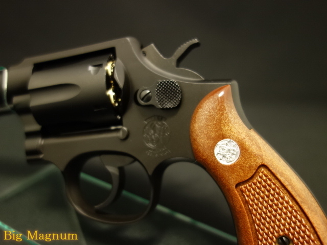 このモデルがVer.3.1と少しだけリニューアルされて登場。外観がM15で採用された.38Special仕様のヨークとそれの形状に合わせたフレームによりリアルにアップデートされました。内部は安定のVer.3メカが入っていますので、作動精度と実射性能も遜色ありません。リアル刻印の再現はもちろん、バレルは最も一般的な4インチテーパータイプを装備し、スクエア・バットタイプのグリップ内にはプレスウエイトが入り、ずっしりとした重量感と、バランスも向上しています。