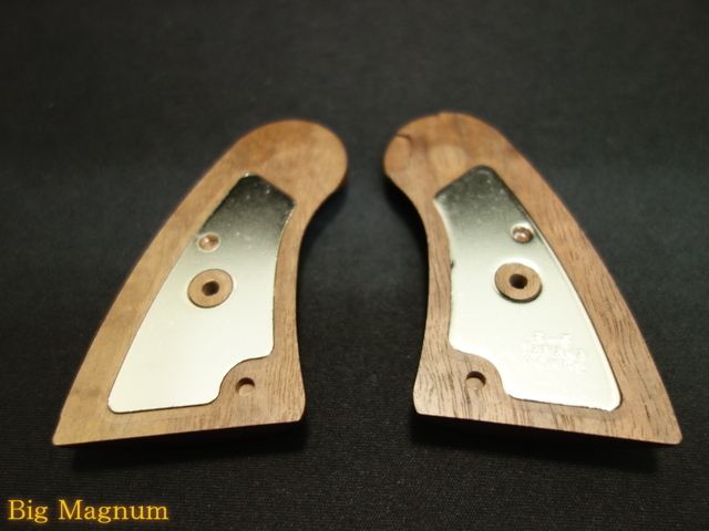 高級品として販売されていたパイソンだけに、チェッカー部分も手が込んでおり、凸型となっているのが特徴です。この独特なオリジナル形状とシルエットを忠実に再現した拘りのグリップとなります。質の良いブラックウォールナット材のみを厳選使用し、表面仕上げは木目を引き立たたせ、どんな色目のモデルにも合うように艶と色合いを調整しています。仕上げ、佇まいはオリジナルの持つイメージを残しつつ、より高品質で重い、トイガンを楽しむためのグリップとなっております。