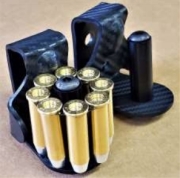 今回このリボルバーをヘビーウエイト樹脂で発火モデルガンとして製作。実銃ではステンレス製のシルバーが印象的ですが、S&Wの一部モデルではステンレス製でもブラックカラーにしたものも存在します。それをイメージし全身マットブラックなモデルとして仕上げています。また素材を変更したことでスタンダードのステンレスメッキモデルから重量も向上しました。内部もインターナルロックなど最新のS&Wの機構はそのままに、ノーマルラインナップとは一線を画すハイエンドなパフォーマンスセンターモデルを再現しています。フルムーンクリップも1つ付属。このモデルの特徴でもあるムーンクリップを使った8発の一気に装填・排莢も楽しめます。素手では難しいムーンクリップへの弾丸の装着用に専用ローディングツールも付属しています。