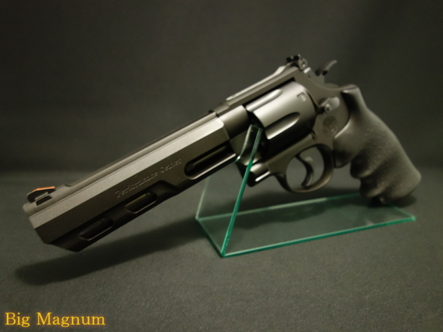 その「Performance Centerシリーズ」を再現したペガサス式バージョン3ガスガンにヘビーウエイト仕様のバリエーションが登場。 実射性能を向上させ、本来のペガサスシステムのポテンシャルを最大限に引き出すことで、気温に左右されにくく、よりパワフルな弾道を実現しています。反動を抑えるため、ウエイトを内蔵したバレルを採用した「ターゲットハンター」仕様。Performance Centerのトレードマークとリアルな刻印が施されたフレーム、ラウンドタイプのリアサイト、ストッパー付きセミワイドトリガーを標準装備としています。また、ウエイト入りのホーグタイプ・フィンガーチャンネル付きラバーグリップと、本体のヘビーウエイト樹脂化により、剛性と重量感が大幅に向上しています。