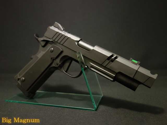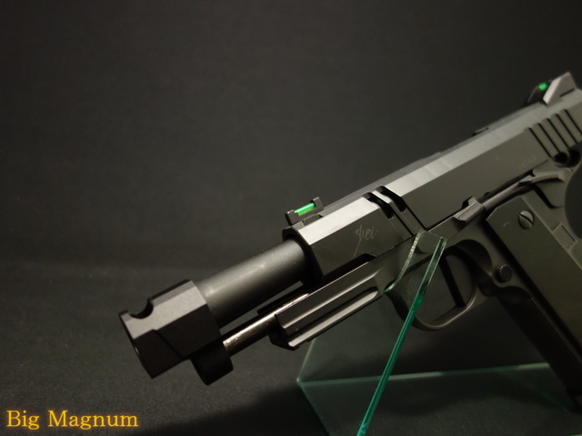 ● 新規デザインの前後グリーン集光サイト ●先端14mm逆ネジ仕様ブルバレル & ロングリコイルガイド