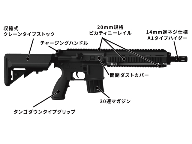 ・HK416リアルサイズのライフルは電動ブローバック式(BB弾の発射はできません)