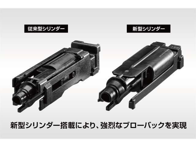 ・ガス容量20%UPの新型シリンダー搭載により、強烈なブローバックを実現